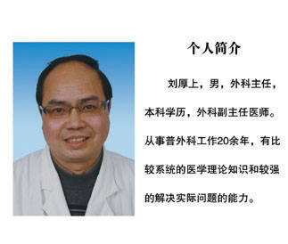 四:專家簡介外科:劉厚上,本科學(xué)歷,副主任醫(yī)師。長期從事普外科工作,有比較系統(tǒng)的醫(yī)學(xué)理論知識(shí)和較強(qiáng)的解決實(shí)際問題的能力,能夠處理本專業(yè)疑難病癥,目前能獨(dú)立完成肝左葉肝葉切除術(shù),胃癌、結(jié)腸癌根治,膽腸吻合、膽道成形術(shù),甲狀腺次全切除術(shù),甲狀腺癌根治術(shù),乳癌根治及改良根治術(shù)。能熟練的應(yīng)用膽道鏡取出膽管內(nèi)的結(jié)石及膽道探查術(shù)。能較熟練的應(yīng)用腹腔鏡開展膽囊切除術(shù)。對(duì)失血性休克、感染性休克、嚴(yán)重的多臟器損傷,急性出血壞死性胰腺炎進(jìn)行搶救,取得了較高的成功率。曾先后在第四軍醫(yī)大學(xué)附屬二院、新疆維吾爾自治區(qū)人民醫(yī)院腹腔鏡科進(jìn)修。內(nèi)科:吳毓美,內(nèi)科主任醫(yī)師。多次出席國際國內(nèi)學(xué)術(shù)會(huì)議,1971年曾參加中國援非醫(yī)療隊(duì)赴非洲工作。從醫(yī)40年,對(duì)各種內(nèi)科疾病的處理積累了豐富的經(jīng)驗(yàn),尤其擅長于呼吸內(nèi)科各種疾病如肺部感染、哮喘、肺間質(zhì)性病變、肺部腫瘤、呼吸衰竭、支氣管擴(kuò)張、氣胸等病的診治。張俊元,內(nèi)科主任醫(yī)師。1964年畢業(yè)于蘇州醫(yī)學(xué)院,先后在北京醫(yī)院、武進(jìn)醫(yī)院工作,為武進(jìn)醫(yī)院神經(jīng)內(nèi)科創(chuàng)始人,并在任職期間將該科室創(chuàng)建為常州市重點(diǎn)?啤1982年開展腦脊液細(xì)胞學(xué)檢查,填補(bǔ)了常州市空白。1990年引進(jìn)射頻溫控?zé)崮g(shù)治療三叉神經(jīng)痛,填補(bǔ)了省內(nèi)空白,已治愈三叉神經(jīng)痛患者一千余例,病人遍布華東區(qū)。撰寫省級(jí)論文19篇,完成科研三項(xiàng),獲省市縣多項(xiàng)科技進(jìn)步獎(jiǎng)。朱龍南,內(nèi)科副主任醫(yī)師。曾任武進(jìn)醫(yī)院大內(nèi)科、急診科主任。從事醫(yī)學(xué)臨床工作四十余年,對(duì)各種心血管疾病如高血壓、冠心病、糖尿病、風(fēng)濕及類風(fēng)濕性關(guān)節(jié)炎、胃腸疾病的診治頗有心得發(fā)表省級(jí)以上論文6篇,并撰寫急癥專著《內(nèi)科急腹癥》一部。朱輝,本科學(xué)歷,副主任醫(yī)師。1998年3月至1999年3月在四川大學(xué)華西醫(yī)院血液、內(nèi)分泌科學(xué)習(xí)。2004年3月至10月在北京大學(xué)糖尿病中心學(xué)習(xí),獲結(jié)業(yè)證書。熟練掌握了內(nèi)分泌疾病的診療常規(guī),尤其對(duì)糖尿病的規(guī)范化治療有豐富的臨床經(jīng)驗(yàn)。中醫(yī)科:李勝,本科學(xué)歷,主任中醫(yī)師。長期從事內(nèi)科醫(yī)療工作,擅長應(yīng)用中西醫(yī)治療常見病、多發(fā)病,尤其是對(duì)于慢性胃炎、慢性腸炎、急性氣管炎、慢性支氣管炎、慢性腎炎、腎病綜合癥、慢性腎衰(早期),用中西醫(yī)結(jié)合治療積累了臨床經(jīng)驗(yàn)。1977年獲“南京先進(jìn)工作者”稱號(hào),2002年獲“常州市優(yōu)秀中西醫(yī)結(jié)合工作者”稱號(hào),曾先后12次獲“院先進(jìn)工作者”“新技術(shù)項(xiàng)目獎(jiǎng)”。曾參加編寫醫(yī)學(xué)著作1部,發(fā)表醫(yī)學(xué)論文10余篇,其中2篇獲“常州市優(yōu)秀科技論文獎(jiǎng)”。婦產(chǎn)科:郭雨訊,大專學(xué)歷,副主任醫(yī)師。自1979年3月開始從事婦產(chǎn)科工作,積累了豐富的臨床經(jīng)驗(yàn),能熟練掌握婦產(chǎn)科常見病和多發(fā)病的診治及婦產(chǎn)科各種手術(shù)操作技術(shù),如全子宮切除術(shù)、宮外孕手術(shù)、卵巢囊腫切除術(shù)、剖宮產(chǎn)術(shù);以及如無痛人流等婦科小手術(shù)的操作和處理。曾先后于無錫第三人民醫(yī)院、常州婦幼保健醫(yī)院婦產(chǎn)科進(jìn)修學(xué)習(xí)。五官科:朱建慧,本科學(xué)歷,副主任醫(yī)師,畢業(yè)于蘇州大學(xué)臨床醫(yī)學(xué)系。從事眼耳鼻喉科工作二十多年,曾先后在江西醫(yī)學(xué)院附屬第二醫(yī)院眼科及常州市第一人民醫(yī)院眼耳鼻喉科進(jìn)修,對(duì)眼耳鼻喉科的常見病、多發(fā)病的診斷和治療積累了豐富的臨床經(jīng)驗(yàn),頗受患者好評(píng)。
