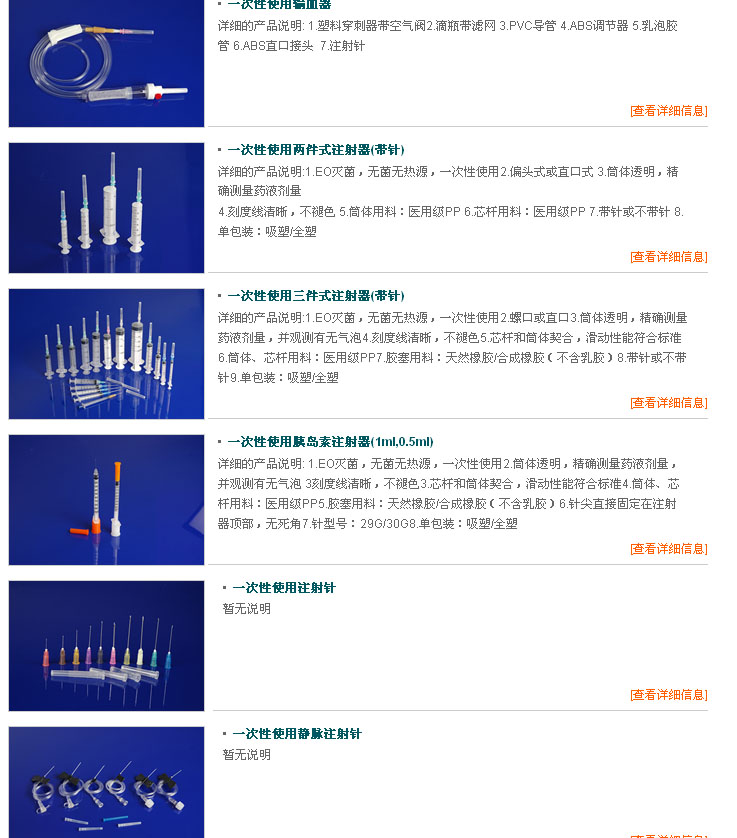 江蘇神力醫(yī)用制品有限公司是我國十四家最早生產一次性醫(yī)療器械的企業(yè)之一,并于1990年首批獲得工業(yè)產品生產許可證,主要生產“田字牌”一次性無菌注射器、一次性使用輸液器、一次性使用輸血器等8大類,38個品種的一次性醫(yī)療器械擁有總資產2000余萬元,是江蘇省醫(yī)療行業(yè)的名優(yōu)企業(yè),公司現已通過美國FDA認證。 公司擁有廠房面積25000平方米,10萬級凈化車間6000平方米,年生產能力1.5億套以上,輸液器每年生產能力8000萬套,其他各類產品5000萬套。各類專業(yè)技術力量雄厚,生產設備先進。2002年1月份,順利通過了TUV的體系審核,取得了CE證書及ISO9002質量體系認證書。2002年2月經對外貿易經濟合作廳核準,頒發(fā)了產品自營進出口資格證書。2002年6月開始申請美國的FDA認證于2007年7月公司順利通過美國FAD認證。 公司產品暢銷全國二十多個省市,并出口到美國、加拿大、荷蘭、丹麥、俄羅斯、阿根廷、黎巴嫩、香港等十多個國家和地區(qū)。 “一流質量,一流服務”是我們永恒的追求,而你的信任和支持是我們最大的榮耀,本公司熱忱歡迎各界朋友和新老客戶光臨指導,與我們一起攜手合作、共創(chuàng)未來。