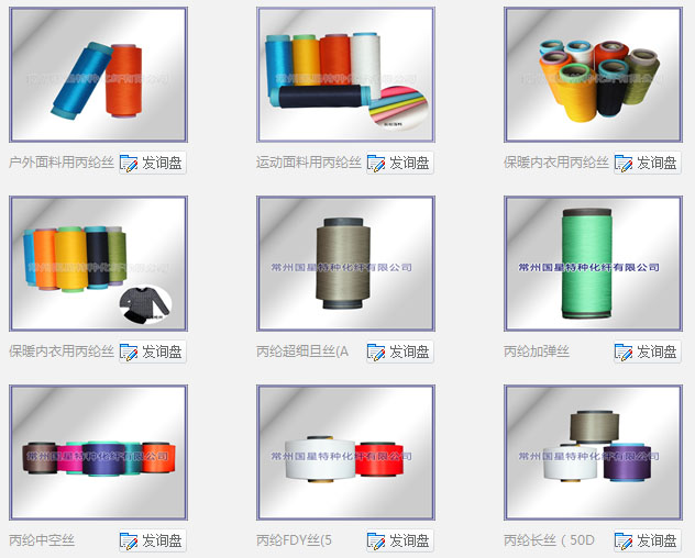 常州國星特種化纖有限公司是以環(huán)保紡織纖維為核心產(chǎn)品的大型企業(yè),為國內(nèi)產(chǎn)能最大,技術(shù)最新,質(zhì)量最優(yōu)的丙綸(聚丙烯PP)超細旦纖維生產(chǎn)廠商。 公司主營:超細旦丙綸(聚丙烯PP)纖維色絲、丙綸(聚丙烯PP)交織混紡功能面料。 本公司提供各種顏色超細旦丙綸(聚丙烯PP)長絲,可按客戶要求定制定產(chǎn)。相關(guān)產(chǎn)品規(guī)格:30D/24F ~ 300D/288F之DTY、ATY、FDY。 本公司以自產(chǎn)丙綸(聚丙烯PP)超細旦纖維色絲為依托,提供100%丙綸(聚丙烯PP)功能面料及丙綸(聚丙烯PP)交織混紡功能面料,是紡織用最新環(huán)保素材,為國內(nèi)外各大運動品牌服裝、內(nèi)衣、家紡企業(yè)之優(yōu)選供應(yīng)商。 Anycool為本公司旗下超細旦聚丙烯(PP)纖維色絲注冊商標(biāo),取意自丙綸(聚丙烯PP)纖維天然特性之質(zhì)輕、性柔、親膚。 Coolast為本公司旗下丙綸(聚丙烯PP)功能面料注冊商標(biāo),取意自此種面料天然特性之導(dǎo)濕排汗,持久干爽 。 本公司以國外原裝成套生產(chǎn)設(shè)備為依托,資深行業(yè)專家技術(shù)指導(dǎo)為保障,集紡、染、織為一體,致力于環(huán)保節(jié)能紡織品研發(fā),生產(chǎn),銷售。公司先后通過ISO9001:2000質(zhì)量體系認證、OKO-TEX 國際紡織品環(huán)保認證。