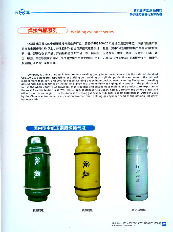 主要產(chǎn)品 中高壓航空滅火瓶、鋼質(zhì)焊接氣瓶、第三類低,中壓力容器、蒸壓釜、換熱器、民用核承壓設(shè)備、5至160立方米各類介質(zhì)貯罐、各種型號罐式集裝箱、生物工程設(shè)備、液化天然氣(LNG)車用氣瓶、液化天然氣(LNG)加氣站、乙炔工程設(shè)備、樹脂生產(chǎn)設(shè)備、核電工程設(shè)備、船舶專用設(shè)備等。