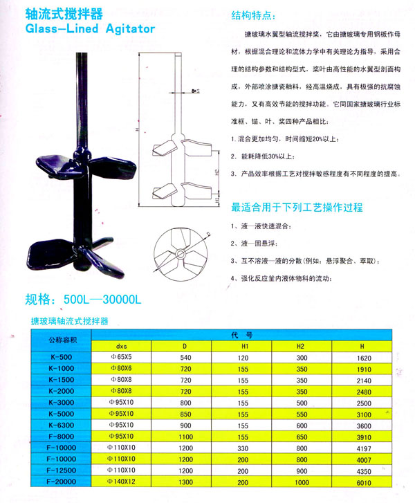 我廠系化工部定點生產(chǎn)搪玻璃設(shè)備企業(yè),主要產(chǎn)品有搪玻璃攪拌器,溫度計套管,W0.5型W1型W2型搪玻璃碟片式冷凝器,搪玻璃管道,塔節(jié),儲罐等等。本廠依靠技術(shù)力量的優(yōu)勢,采用國內(nèi)最先進的工藝,研制第三代多孔冷凝器,憑著三十多年積累的實踐經(jīng)驗和現(xiàn)代化科學(xué)工業(yè)設(shè)備,成為攪拌傳動裝置生產(chǎn)研發(fā)基地。并為用戶專業(yè)設(shè)計制造各類大型搪玻璃反應(yīng)釜及攪拌傳動裝置,各種搪玻璃非標(biāo)攪拌器,軸流式攪拌器,推進式攪拌器,不銹鋼攪拌器,各種形式的攪拌裝置。 多年來我廠不斷研發(fā)新產(chǎn)品,新產(chǎn)品在全國成功推廣應(yīng)用,為廣大化工,制藥,農(nóng)藥,石油化工等行業(yè)提高產(chǎn)品制造效率,延長使用壽命等解決難題做貢獻。 微型反應(yīng)釜5L 10L 20L 30L 40L結(jié)構(gòu)小巧具有通常反應(yīng)釜的全部功能是中試及科研齊發(fā)的理想設(shè)備。