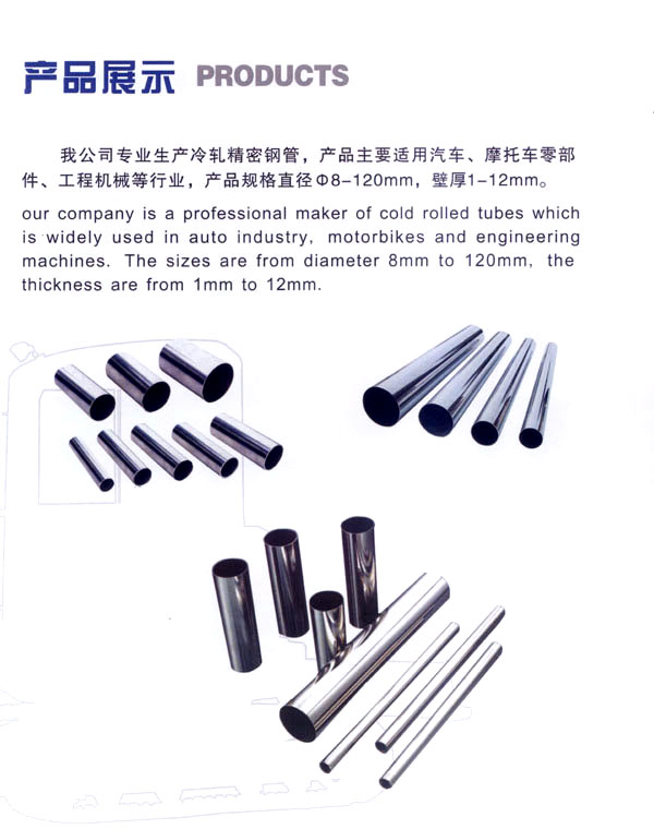 常州市華強精密鋼管有限公司創(chuàng)建于1997年12月,公司位于歷史悠久、交通發(fā)達的常州市武進區(qū)遙觀鎮(zhèn)工業(yè)集中區(qū)錢家工業(yè)園區(qū)內,廠區(qū)面積16000平方米,注冊資金2000萬元,現(xiàn)有職工120余名,是一家規(guī)模、質量、效益俱佳,以冷軋精密鋼管、冷拔精密焊管為主的私營股份制企業(yè)。 公司具備年生產冷軋精密鋼管3500余噸、生產冷拔精密焊管(邦迪管)12000余噸的能力。公司現(xiàn)設有冷軋和焊管兩大車間,擁有工程技術人員8名,各部門管理人員12名,質量管理人員6名。2003年以來公司已分別通過IS09001—2008質量管理體系認證。以及IS014001:2004環(huán)境管理體系認證。 冷軋精密鋼管產品主要用于汽車、機電、工程機械等行業(yè),冷拔精密焊管產品主要用于家電制冷行業(yè)的配套廠家。我公司始終堅持走科技創(chuàng)新之路。嚴把產品質量關,以及不斷提高的服務質量。以深得客戶信賴。近幾年來產量得到大幅度的提高。我們將一如既往,努力奮斗,把最好的產品,最優(yōu)惠的價格,最好的服務奉獻給廣大的客戶。 讓客戶滿意永遠是我們追求的目標。