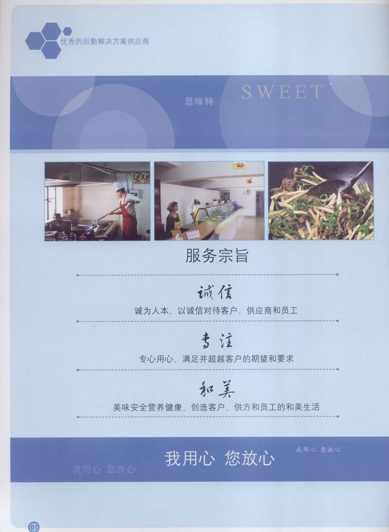 常州市思味特餐飲有限公司是一家專業(yè)從事企事業(yè)后勤服務(wù)的有限責(zé)任公司,公司從承包食堂起步,逐漸發(fā)展為經(jīng)營團膳承包、營養(yǎng)送餐、生活區(qū)管理、連鎖餐廳的綜合型企業(yè)。2008年公司斥資100萬元,在常州興建了可以同時提供3000餐膳食的中央廚房,重點打造“和美客”后勤服務(wù)品牌,全力為企事業(yè)單位解決后勤后顧之憂。 到目前為止,我們合作成功的企事業(yè)單位超過50多家,服務(wù)人數(shù)突破15萬,合作單位包括國家機關(guān)、國有企業(yè)、三資企業(yè)、民營企業(yè)、學(xué)校、醫(yī)院等,其中不乏國際知名品牌公司。 和美客愿為更多的國內(nèi)外企事業(yè)單位及機關(guān)團體分憂解難,從廚房設(shè)計、菜品配送、團膳承包、到生活區(qū)管理等提供全方位的服務(wù)。