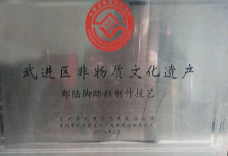 常州鄭陸何金興腳踏糕制作坊從事腳踏糕制作工藝200多年,五代傳承,制作面積300平方米左右,腳踏糕是用黏性大的米或米粉蒸成的糕,是中國(guó)農(nóng)歷年的應(yīng)時(shí)食品。春節(jié),我國(guó)很多地區(qū)都有講究吃年糕。年糕有紅、黃、白三色,象征金銀,年糕又稱“年年糕”,與“年年高”諧音,寓意著人們的工作和生活一年比一年提高。所以前人有詩(shī)稱年糕:“年糕寓意稍云深,白色如銀黃色如金。年歲盼高時(shí)時(shí)利,虔誠(chéng)默祝望財(cái)臨!绷碛姓憬幉ㄊ薪眳^(qū)慈城鎮(zhèn)的水磨年糕也是特別有名。