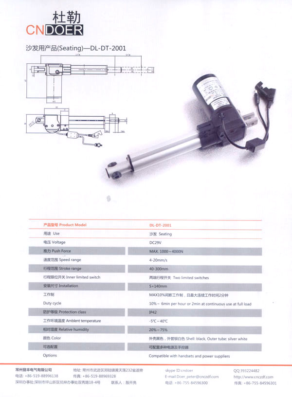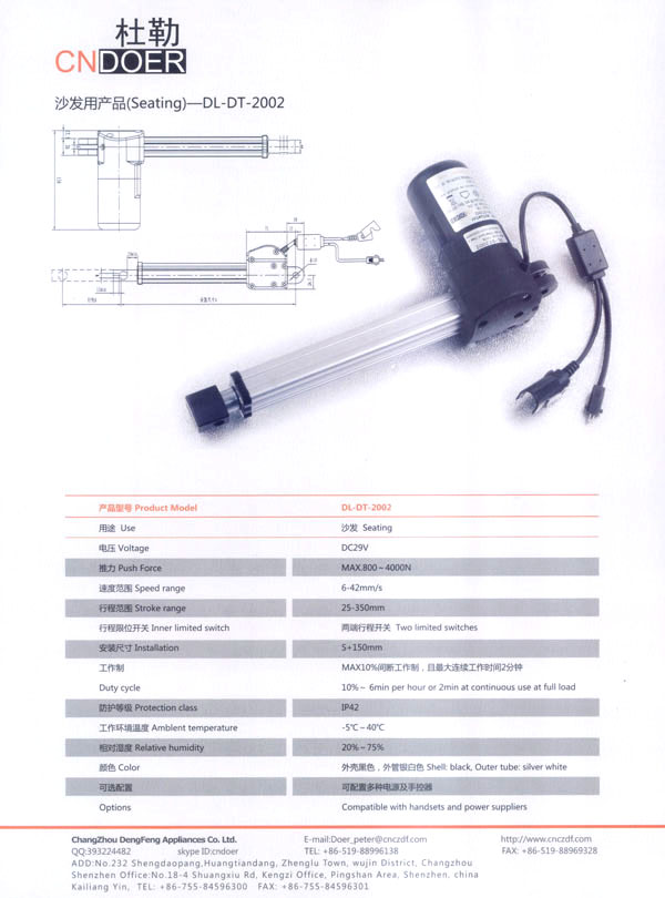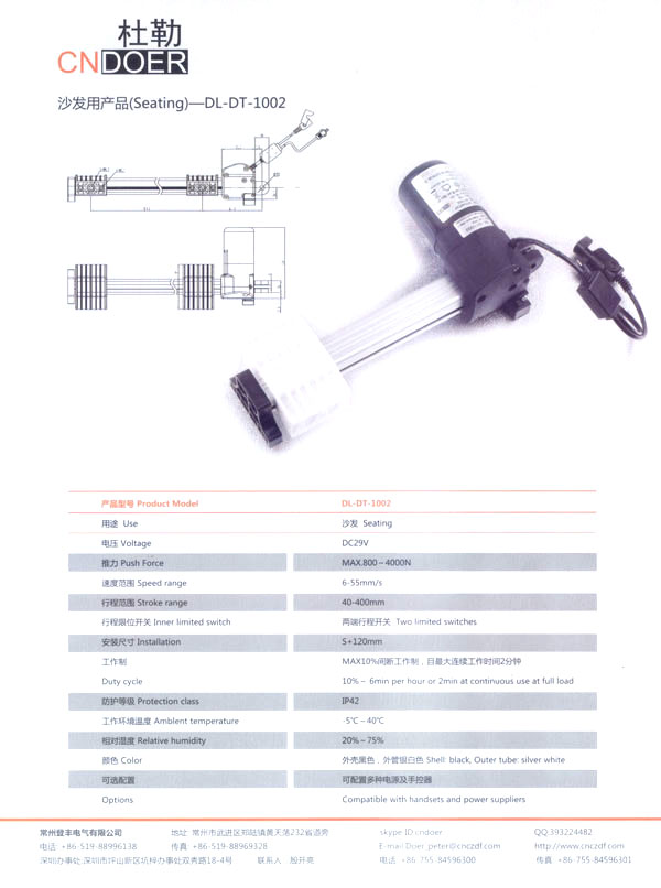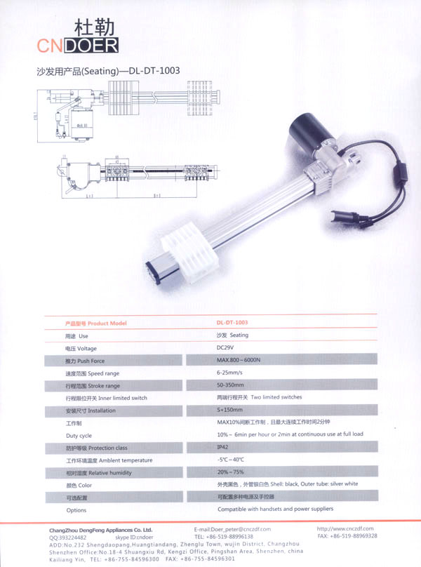 常州登豐電氣有限公司位于人杰地靈的江南古城—常州武進(jìn)區(qū)鄭陸鎮(zhèn)東青。緊臨常州火車站、滬寧高速公路、312國道、長江港等,交通十分便捷。 公司最早創(chuàng)辦于1989年,歷經(jīng)20多年的艱苦創(chuàng)業(yè),本著“誠信為本、品質(zhì)至上”的經(jīng)營理念,公司生產(chǎn)的“武微”牌空調(diào)電機、“蘇杰”牌電動車電機和采用國外先進(jìn)技術(shù)制作的動力強勁、同時具有過載保護(hù)和消音裝置的綠色環(huán)保產(chǎn)品:“登豐”、“聚美”牌食物垃圾處理器。這些產(chǎn)品在全國各地市場均享有較高的知名度。 如今,公司為謀求新的發(fā)展,立足于國內(nèi),放眼于國際市場,投入了大量的人力、財力、物力,購置了先進(jìn)的全自動生產(chǎn)流水線、全自動繞線機和各類精密的測試儀器,多功能隔音房等設(shè)施,全新推出了具有美好前景和廣闊市場的主打產(chǎn)品:“杜勒”牌系列線性推桿及各類配套電機。該產(chǎn)品已通過ISO9001認(rèn)證,產(chǎn)品外觀新穎、制作精良、噪音小、操作靈活簡便,暢銷國內(nèi),遠(yuǎn)銷國外,被廣泛應(yīng)用于電動沙發(fā)、醫(yī)療護(hù)理床、手術(shù)床、按摩椅等眾多領(lǐng)域!岸爬铡碑a(chǎn)品已被越來越多的客戶所青睞和認(rèn)可! 公司竭誠歡迎各界朋友、新老客戶前來洽談合作,共謀發(fā)展。我們也將不斷開拓創(chuàng)新,提高產(chǎn)品質(zhì)量,完善售后服務(wù)體系,努力打造成為行業(yè)先鋒企業(yè)!