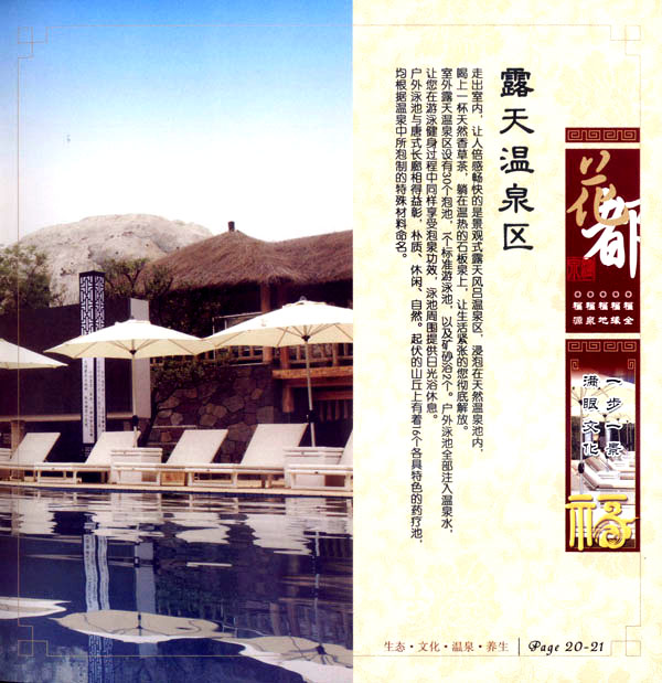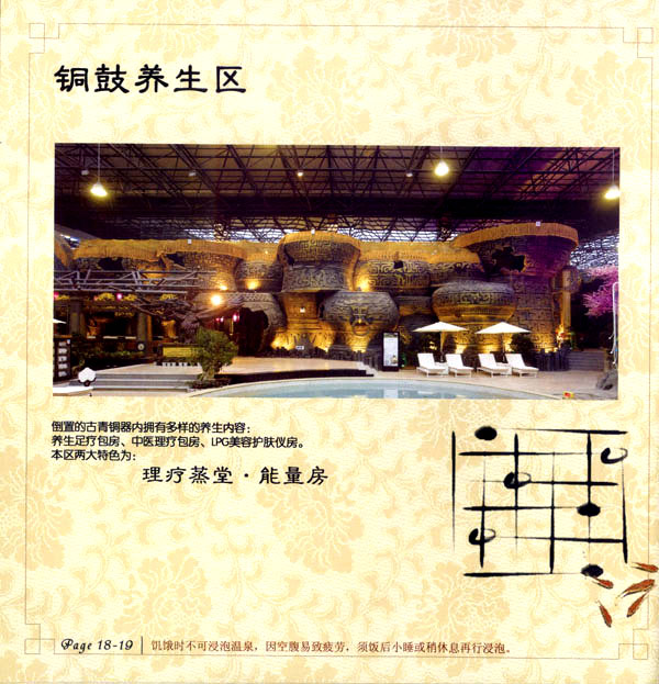淹城花都溫泉水城孕育天地之精華,悅身、悅?cè)、悅心、悅神。置身其中泉水潺潺,霧氣繚繞、花瓣飄香,恍若仙境。“掬水月在手,弄花香滿衣”,花都溫泉的浪漫與溫潤(rùn)在這里完美展現(xiàn)。 花都溫泉水城包括洗浴區(qū)、戲水世界、露天溫泉、自助餐廳、生態(tài)房、別墅區(qū)、紅文化房、VIP區(qū)等多種功能區(qū)域,是集溫泉養(yǎng)生、休閑住宿、演藝會(huì)務(wù)為—體的休閑度假勝地,給賓客帶來(lái)江南小鎮(zhèn)的浪漫水城之旅。 古木新枝畔賓客對(duì)酒當(dāng)歌,溪泉石椅旁把茶品啜。 淹城-三勤生態(tài)酒店,這里是一處綠色生態(tài)的美食家園。此地鬼斧神工.奇水異石,和風(fēng)細(xì)雨林中穿過(guò),引百鳥朝來(lái)暮歌;這里集生態(tài)餐飲、演藝、中小型會(huì)務(wù)為一體,將現(xiàn)代裝飾風(fēng)格和古雅拙樸的自然裝修完美整合;這里聚集大江南北名廚,推出精致綠色美昧佳肴。來(lái)到這里,賓客可享田園至美之景,品舌尖至鮮之味,實(shí)乃人生一大樂(lè)事。