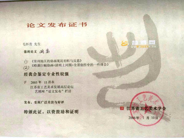 近年來,創(chuàng)作的烙畫作品分別獲得過全國、省市級的金、銀、銅獎多次。中央電視臺曾兩次播放過本人的烙畫作品,江蘇電視臺、常州電視臺也曾多次播放過本人的作品與烙畫藝術(shù)生涯,揚(yáng)子晚報(bào)、常州日報(bào)、常州晚報(bào)也曾多次報(bào)導(dǎo)過本人的烙畫作品,出版物有三種版本都能查閱到介紹本的烙畫從藝生涯與藝術(shù)業(yè)績。