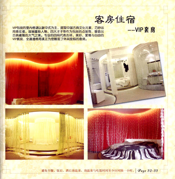 花都溫泉水城包括洗浴區(qū)、戲水世界、露天溫泉、自助餐廳、生態(tài)房、別墅區(qū)、紅文化房、VIP區(qū)等多種功能區(qū)域,是集溫泉養(yǎng)生、休閑住宿、演藝會務為—體的休閑度假勝地,給賓客帶來江南小鎮(zhèn)的浪漫水城之旅。