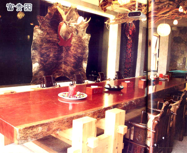 古木新枝畔賓客對酒當歌,溪泉石椅旁把茶品啜。