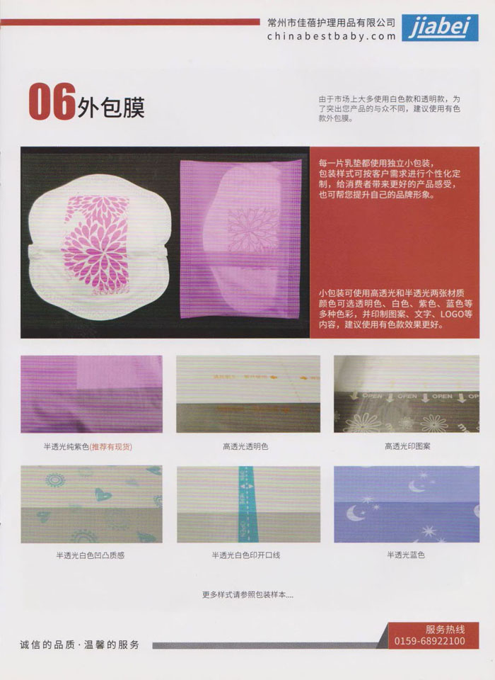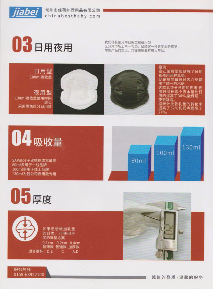 常州市佳蓓護理用品有限公司是一家專業(yè)從事開發(fā)、生產(chǎn)、銷售并具備自營出口的外向型企業(yè),主要生產(chǎn)“一次性防溢乳墊“,以質(zhì)量穩(wěn)定,柔軟親膚而深受客戶和消費者青睞。本公司產(chǎn)品從生產(chǎn)到包裝成品嚴(yán)格執(zhí)行無菌生產(chǎn)標(biāo)準(zhǔn)化流程,并和設(shè)備生產(chǎn)廠家合作開發(fā)了兩條從進料、生產(chǎn)、檢測、滅菌、成品包裝的無菌生產(chǎn)線,從而實現(xiàn)了真正意義上的無菌生產(chǎn)標(biāo)準(zhǔn)化。