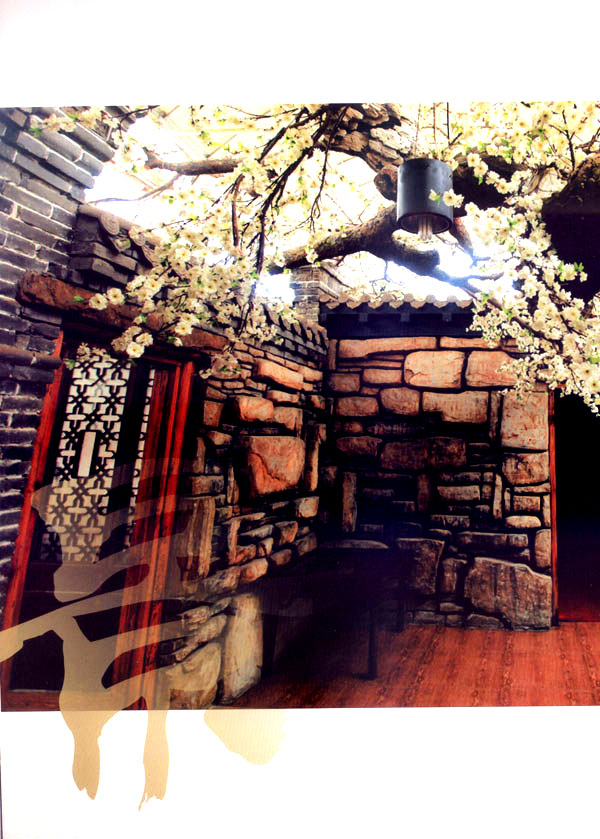 古木新枝畔賓客對(duì)酒當(dāng)歌,溪泉石椅旁把茶品啜。