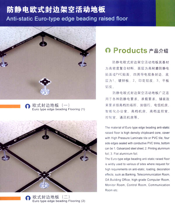 常州天馳活動地板有限公司始創(chuàng)于2010年,原身是常州市武進(jìn)區(qū)橫林天馳機(jī)房地板廠,地處橫林工業(yè)園區(qū),交通便捷。 公司主要生產(chǎn)和銷售各種機(jī)房地板,自創(chuàng)立以來,以品質(zhì)第一,信譽(yù)第一,服務(wù)第一的理念堅(jiān)持做全國最優(yōu)質(zhì)量。 防靜電高架活動地板是計(jì)算機(jī)行業(yè)發(fā)展起來的新型鋪地材料,隔離了潮氣,靜電灰塵。最重要的是解決了綜合布線問題,無需預(yù)埋管線,可隨時(shí)拆卸,搬移,保證了資訊設(shè)備完整的優(yōu)點(diǎn),適應(yīng)了智能化樓宇中信息自動化技術(shù)對所處環(huán)境的特定要求,避免了廣大客戶的雙重投資,使現(xiàn)代化辦公程度更加高效,辦公場所更加舒適。 公司專業(yè)生產(chǎn)“天馳”系列活動地板,符合國家安全要求,種類完備多樣,其中防靜電瓷質(zhì)高架通路地板除具有普通瓷質(zhì)的裝飾和實(shí)用性外,其耐磨,防水,防火功能優(yōu)于其他同類產(chǎn)品,深受客戶歡迎。 公司大力發(fā)展國內(nèi)外銷售業(yè)務(wù),多次中標(biāo)國內(nèi)重點(diǎn)裝飾工程,例:湖南電視臺,寧波縣變電站,鞍山市120急救指揮中心等。 公司將一如既往開發(fā)和制造一流的產(chǎn)品,愿與廣大有識之士合作發(fā)展,共創(chuàng)美好未來!