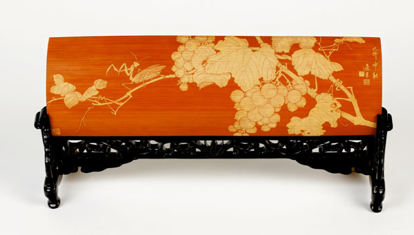 徐敏,一九七四年生于江蘇常州,擅長山水油畫。師從竹刻家范遙青研習(xí)竹刻至今有二十余載。其作品受到竹刻權(quán)威鑒賞家王世襄認(rèn)可,并親筆為她題字褒獎(jiǎng)。現(xiàn)為常州市非物質(zhì)文化遺產(chǎn)傳承人。