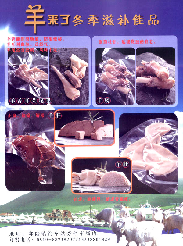 鄭陸橋頭羊肉館主要從事羊肉、羊肉制品的加工。羊肉性溫?zé)帷⒀a氣滋陽、暖中補氣、開胃健脾、還可以去濕氣避寒冷,暖胃寒、養(yǎng)吃百草、養(yǎng)根據(jù)自身生理需要選擇草木、固羊有“百藥之庫”之稱。古人云:多吃羊肉、健康長壽。