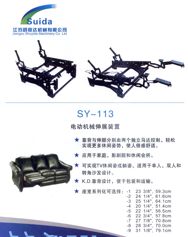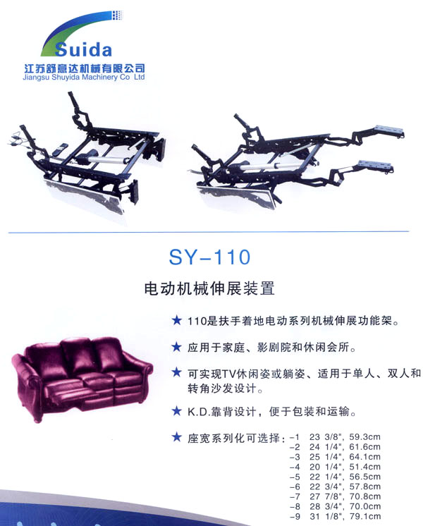 江蘇舒意達機械有限公司是一家集研發(fā)設(shè)計,生產(chǎn)制造及銷售的專業(yè)家具五金企業(yè)。公司成立于2006年,座落于風(fēng)景秀麗的江南常州,交通運輸?shù)锰飒毢,為海?nèi)外客商的來往交流,洽談和供貨提供了諸多便利,公司占地面積28000平方米,生產(chǎn)廠房面積18000平方米,獨立的辦公樓,擁有良好的工作環(huán)境。 我們的經(jīng)營思理念:堅持以人為本,科技為先,用先進的設(shè)備,好的工藝流程制造一流的產(chǎn)品。 我們的口號:保證以優(yōu)秀的品質(zhì)服務(wù)于客人,我們的目標:研發(fā)更多舒適的產(chǎn)品,帶來生活的享受。 公司誠邀海內(nèi)外客商前來指導(dǎo)洽談,攜手共進,共造雙贏。