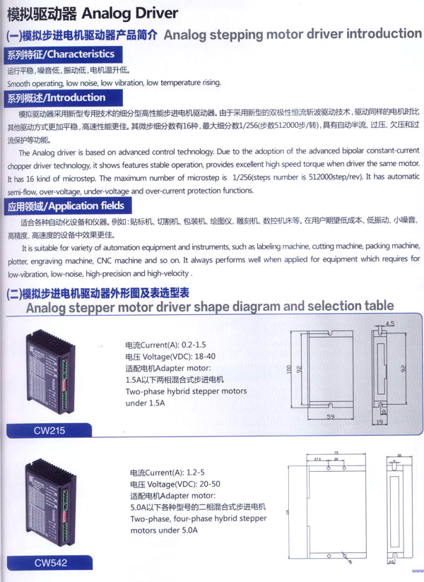 常州創(chuàng)偉電機(jī)電器有限公司成立于1995年,是一家專業(yè)從事步進(jìn)電機(jī)及驅(qū)動(dòng)控制生產(chǎn)、研發(fā)的企業(yè)。現(xiàn)已擁有一批富有經(jīng)驗(yàn)的生產(chǎn)和開(kāi)發(fā)隊(duì)伍。企業(yè)在多年的發(fā)展過(guò)程中,為全國(guó)各地各行業(yè)提供了大量質(zhì)優(yōu)價(jià)廉的步進(jìn)電機(jī)及控制產(chǎn)品。應(yīng)用領(lǐng)域涉及機(jī)器人、音樂(lè)噴泉、數(shù)控機(jī)床設(shè)備、工業(yè)電子自動(dòng)化設(shè)備、醫(yī)療器械、廣告器材、舞臺(tái)燈光設(shè)備、印刷設(shè)備、紡織機(jī)械、計(jì)算機(jī)外部應(yīng)用設(shè)備等等。 公司產(chǎn)品先后通過(guò)ISO9001質(zhì)量管理體系認(rèn)證,RoHS認(rèn)證,CE認(rèn)證。公司現(xiàn)擁有全自動(dòng)繞線機(jī)、調(diào)壓式充磁機(jī)、萬(wàn)能外圓磨床、數(shù)控機(jī)床等設(shè)備50余臺(tái),固定資產(chǎn)3000萬(wàn)元,員工總數(shù)200余人,其中技術(shù)人員25人。年生產(chǎn)各類電機(jī)100萬(wàn)臺(tái)。依靠齊全的檢測(cè)設(shè)備、完善的檢測(cè)手段、嚴(yán)格的質(zhì)量標(biāo)準(zhǔn),我們一直致力于提高產(chǎn)品的質(zhì)量和性能。對(duì)于每一個(gè)客戶我們都提供自始自終的技術(shù)服務(wù)和產(chǎn)品售后服務(wù)。 我公司的主要產(chǎn)品有20BH系列、28BH系列、35BH系列、39BH系列、42BH系列、42BHH系列、57BH圓形系列、57BHH方形系列、60BHH方形系列、86BH圓形系列、86BHH方形系列,以及110BHH系列的四相(二相)混合式步進(jìn)電。CW60BL、CW63BL、CW70BL、CW92BL系列無(wú)刷電機(jī)也相繼上市。另外步進(jìn)電機(jī)驅(qū)動(dòng)器CW215、CW230、CW5045、CW8060、CW6060AC、CW1108以及全新數(shù)字式驅(qū)動(dòng)器CWD230、CWD556、CWD860H、CW2M2208、CW3M2208和閉環(huán)電機(jī)驅(qū)動(dòng)器CWDS556,CWDS660,CWDS860H,CWDS880L,CWDS1108,CWDS2206等系列也暢銷全球。另外本公司也可對(duì)外承接各種步進(jìn)電機(jī)及相關(guān)工控系統(tǒng)的應(yīng)用系統(tǒng)工程。 熱忱歡迎國(guó)內(nèi)外客商前來(lái)洽談及合作。