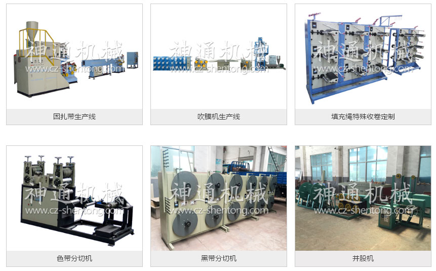 4.電纜填充網(wǎng)狀絲、PP縱向拉伸膜、PE壓花膜成套生產(chǎn)線設(shè)備系列,及各種特殊規(guī)格的電纜填充繩收卷機(jī)等電纜材料輔助設(shè)備5.高低壓PP,PE吹膜機(jī)及撕裂膜、捆扎帶生產(chǎn)線設(shè)備系列。