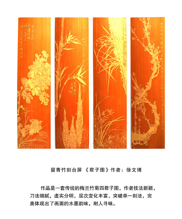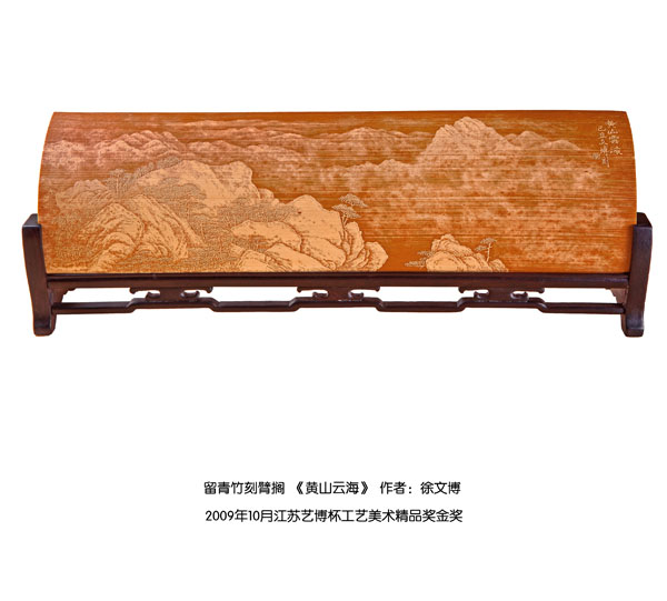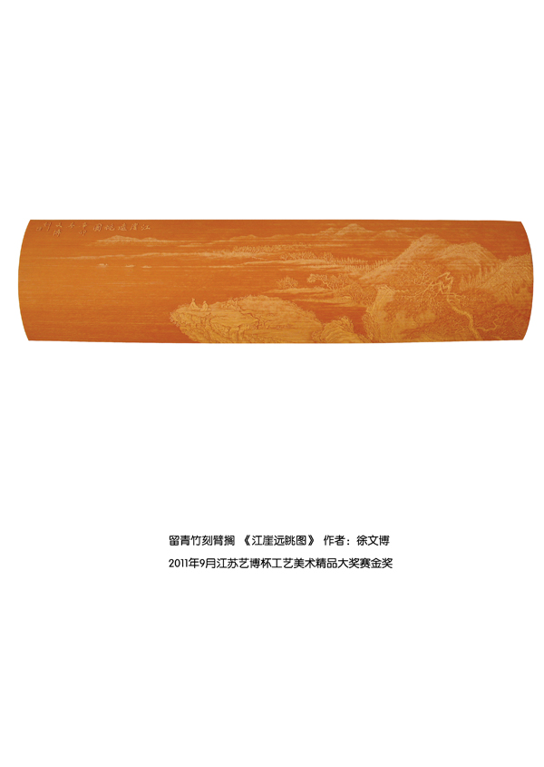 徐博(藝名文博),1973年生,江蘇武進(jìn)人,江蘇省省名人,高級(jí)工藝美術(shù)師,常州市留青竹刻非遺傳承人,常州工藝美術(shù)家協(xié)會(huì)理事,被譽(yù)為當(dāng)今中國(guó)最具創(chuàng)新意識(shí)的新銳竹刻家代表,多次獲得國(guó)家工藝美術(shù)大獎(jiǎng)。酷愛(ài)留青竹刻的徐文博賞竹為樂(lè),以竹詠志,借竹抒懷,悉心探索留青竹刻的藝術(shù)表現(xiàn)。在中國(guó)工藝美術(shù)大師蕭劍波的精心指導(dǎo)下,開(kāi)創(chuàng)留青水墨山水之技法,更好的體現(xiàn)了竹刻淡雅清秀的藝術(shù)風(fēng)格,并不斷汲取書(shū)畫(huà)、攝影、雕塑等藝術(shù)精華,不斷滋養(yǎng)藝術(shù)情趣,提升擴(kuò)展胸襟人格的同時(shí)也逐步形成了其形神兼?zhèn),虛?shí)相生,氣韻生動(dòng)的藝術(shù)特點(diǎn),作品為眾多的國(guó)內(nèi)外收藏家珍藏。