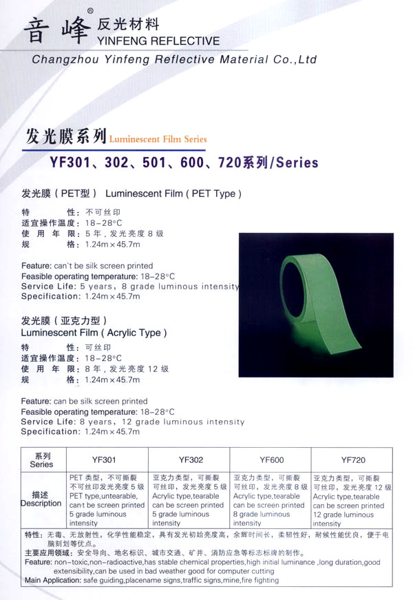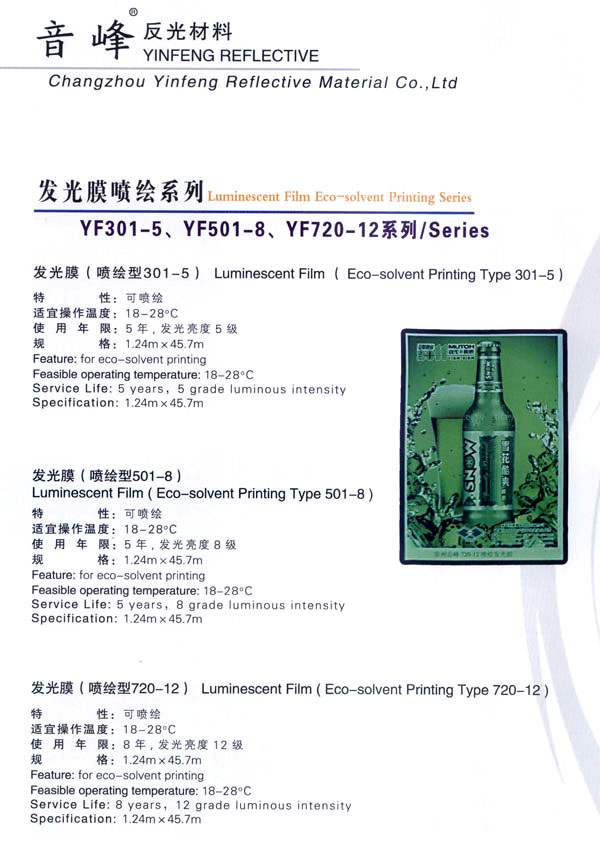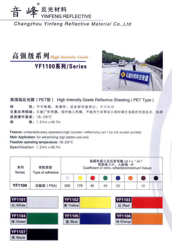 公司主生產(chǎn):廣告級反光膜、工程級反光膜、車牌級反光膜、高強級反光膜、廣告級反光雙色條、發(fā)光膜、噴繪反光膜、晶彩格、電信電力反光膜,鍍鋁膜等等..........根據(jù)國家指令法規(guī):反光材料的領(lǐng)域,如公路標志、標牌、標線、礦山、鐵路等......... 反光膜廣泛應(yīng)用于各種廣告標志牌,公路鐵路的導(dǎo)向牌、指示牌、地名牌、車牌,道路交通標志,物業(yè)小區(qū)標志,臨時施工標志,廣告宣傳、安全防護、高等級公路的各種警示標語,標識牌等。
