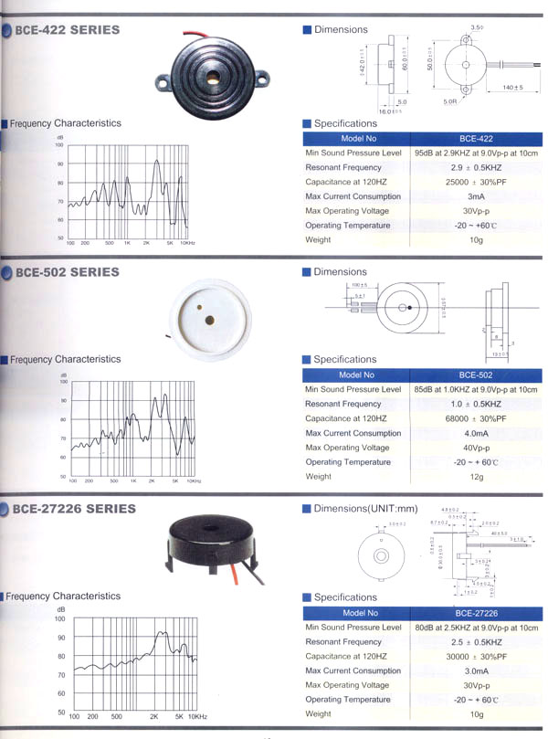 本公司生產(chǎn)的蜂鳴器結(jié)構(gòu)緊密,材質(zhì)輕,功耗低,質(zhì)量可靠,使用方便,價(jià)格合理,采用最新技術(shù)電子元件。廣泛應(yīng)用于打印機(jī)、電話、定時(shí)器、尋呼機(jī)、洗衣機(jī)、取款機(jī)、報(bào)警器、電腦終端機(jī)、復(fù)印機(jī)、電唱機(jī)、汽車及摩托車電子設(shè)備、空調(diào)設(shè)備、萬用表、遙控裝置、各種安全裝置以及便攜或電池式迷你型裝置。