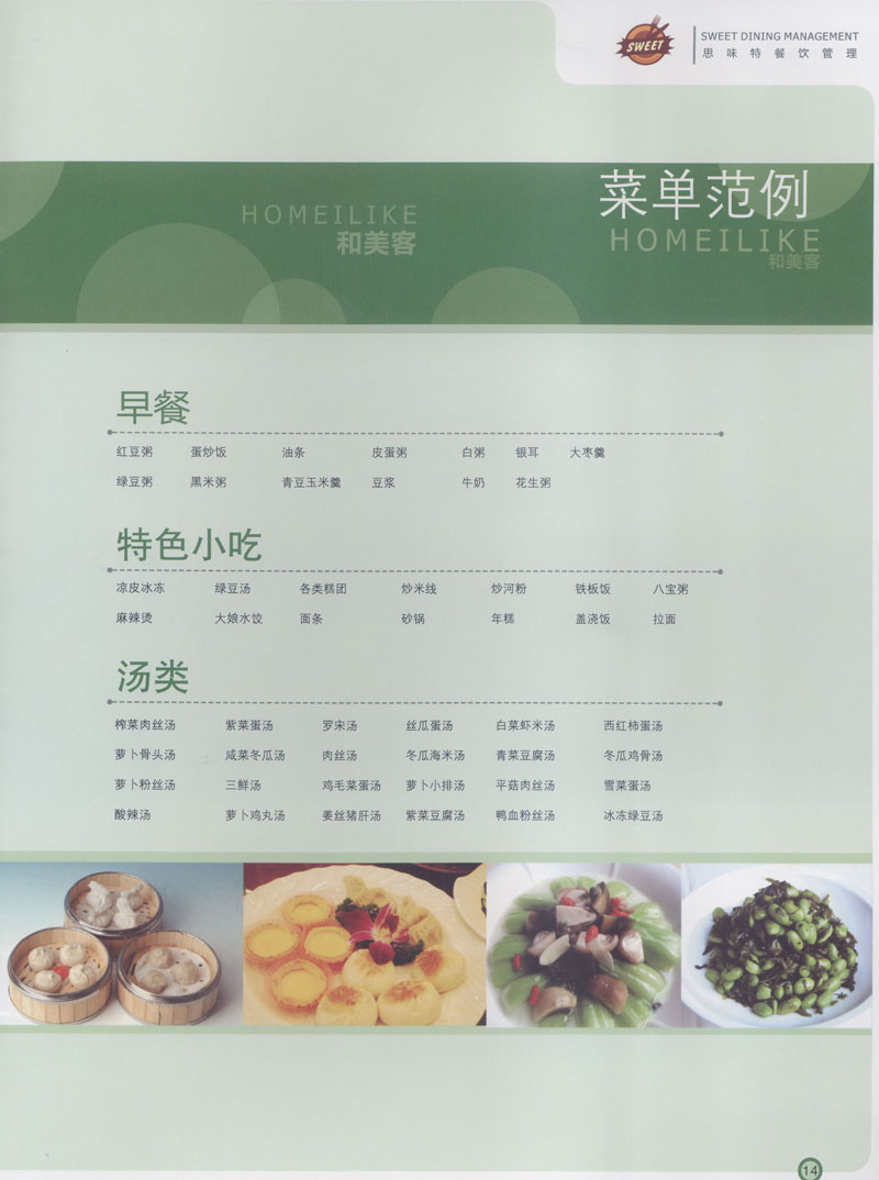 常州市思味特餐飲有限公司是一家專業(yè)從事企事業(yè)后勤服務(wù)的有限責任公司,公司從承包食堂起步,逐漸發(fā)展為經(jīng)營團膳承包、營養(yǎng)送餐、生活區(qū)管理、連鎖餐廳的綜合型企業(yè)。2008年公司斥資100萬元,在常州興建了可以同時提供3000餐膳食的中央廚房,重點打造“和美客”后勤服務(wù)品牌,全力為企事業(yè)單位解決后勤后顧之憂。