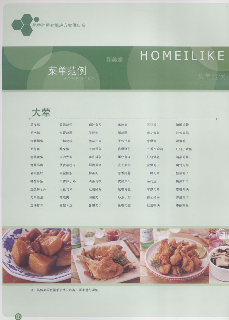 和美客愿為更多的國內(nèi)外企事業(yè)單位及機關(guān)團體分憂解難,從廚房設(shè)計、菜品配送、團膳承包、到生活區(qū)管理等提供全方位的服務(wù)。