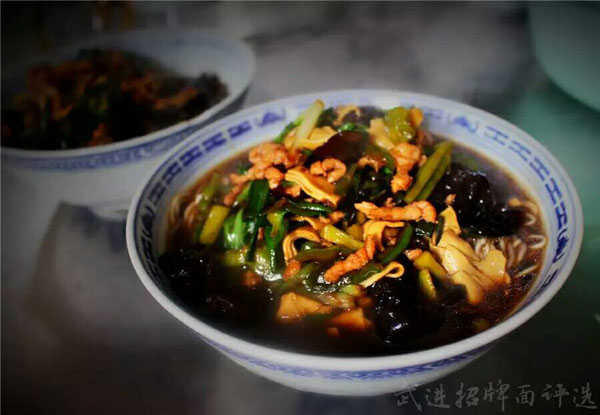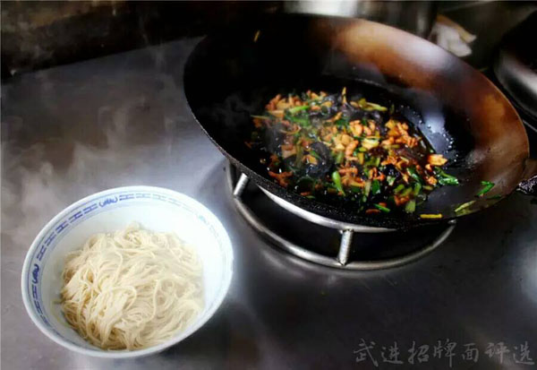 武進(jìn)區(qū)青城面館經(jīng)營(yíng)面積280平方米左右,主要特色是現(xiàn)炒肉絲,素菜蓋澆面,面館創(chuàng)始人今年63歲的王蘭珍,她對(duì)美食有著高于常人的悟性。她開(kāi)過(guò)饅頭店,開(kāi)過(guò)小飯館,承包過(guò)食堂,燒菜、取料樣樣在行,吃過(guò)的人常常贊不絕口。 20世紀(jì)初,在跟德興面館的老師傅學(xué)了做面手藝后,王蘭珍萌生了開(kāi)一家面館的想法,除了可以養(yǎng)家糊口,最重要的是想讓更多人嘗嘗自己的手藝。于是,她在自己的住處擺起了幾張桌椅,面館就算正式營(yíng)業(yè)了。因?yàn)榧易∏喑菢颍跆m珍干脆取名“青城面館”。 “從早上5點(diǎn)多開(kāi)始營(yíng)業(yè),到下午1點(diǎn)多打烊,一天至少要賣(mài)掉300多碗面,用掉近160斤面粉!睘楹吻喑敲骛^的面條如此受歡迎,兒媳婦陸偉紅說(shuō)秘訣在于湯頭和澆頭。湯頭分白湯和紅湯,白湯是由10斤豬骨頭熬制而成,湯色清澈而味道濃郁;紅湯以骨頭湯作底湯,加入茴香、甘草、草果等20多種中草藥,以及糖、醬油等調(diào)味品,鮮而不腥,散發(fā)出陣陣香味。 和一般面館事先燒制好澆頭,放在盆里供客人選擇不同,青城面館的澆頭都是一份份現(xiàn)炒的,特別講究食材的新鮮。就拿暢銷(xiāo)的肉絲蔬菜紅湯面來(lái)說(shuō),要先起猛火,把肉絲、木耳、蘑菇、青菜等食材放一起煸炒至香,然后澆在撈起的面條上。一碗面出來(lái),現(xiàn)炒的澆頭與面條融合,味道香郁至極。 遙觀人的早晨,醒得有些早。對(duì)很多遙觀人來(lái)說(shuō),美好的一天是從青城面館開(kāi)始的。那一碗碗現(xiàn)炒的蓋澆面,筋道爽滑、醬香味濃,溫存著他們的胃與記憶,帶來(lái)刻進(jìn)骨子里的家鄉(xiāng)味道。