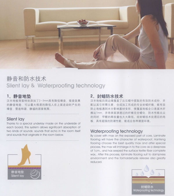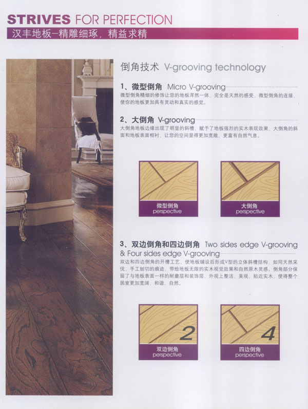 漢豐地板以奉獻(xiàn)生活中最完美的地板為發(fā)展目標(biāo),時(shí)尚流行的設(shè)計(jì)風(fēng)格和多樣化的產(chǎn)品類型,贏得了市場的廣泛贊譽(yù)和肯定。產(chǎn)品嚴(yán)格按照歐洲標(biāo)準(zhǔn)檢測強(qiáng)化木地板的各項(xiàng)性能指標(biāo).達(dá)到百分百的國際技術(shù)標(biāo)準(zhǔn),確保了每一塊地板都有著上乘品質(zhì),是綠色環(huán)保的好地板。并先后通過了Isc)9001國際質(zhì)量管理體系認(rèn)證,IS014001國際環(huán)境管理體系認(rèn)證.中國環(huán)境標(biāo)志產(chǎn)品認(rèn)證,深得用戶的一致好評(píng),是寫字樓、商場、大型超市、學(xué)校、建筑樓宇、娛樂場所、家用私宅等鋪裝的首選地板。