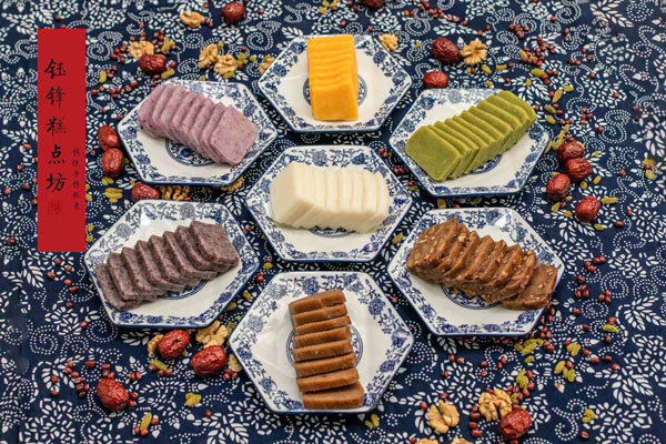 腳踏糕本名“年糕”,按常州周邊地區(qū)的風俗習慣,在春季前夕,各家各戶都要蒸年糕,吃年糕。“糕”諧音“高”,過年吃年糕被賜予“年年高”,一年高一年,鋒吉祥之意,表達這人們對未來美好生活的憧憬和良好的祝愿。今天小編要帶大家的就是一家至今保持著傳統(tǒng)手工制作的鈺鋒糕點坊。 鈺鋒糕點坊位于常州鄭陸鎮(zhèn)三皇廟范家莊,一個比較偏僻的村莊,雖然這家作坊不大,但香糯絲滑,軟糯適中,韌勁十足的腳踏糕吸引了無數(shù)的食客。制作一條腳踏糕要從淘米,浸泡,碾粉,鋪粉,一層一層的鋪下去,需要無數(shù)道制作工序,這些都是店主孫煥公公老周,憑著幾十年的經(jīng)驗,加上店主孫煥從不馬虎的決心! 這“腳踏”也并非赤腳上陣,而是把蒸好的糕倒入早以準備好的框子里,用布包裹好,上面再用薄膜包好,再蓋上布,再換上專門腳踏的布鞋,踩的時候要勻稱,左右腳要配合好,不然糕會高高低低,不平整,最后再拿蠟燭線拆成一條小長條,再拿帶包裝好,如此又香又糯的腳踏糕就大功告成了。 店主孫煥為了讓更多的人認識和了解常州腳踏糕的傳統(tǒng)文化和美食,她在傳統(tǒng)工藝中增加了適合現(xiàn)代文化的多種口味,她在糕里加入南瓜,紫薯,老紅糖,大麥汁,血糯米,核桃,葡萄干,紅棗等食材,做出五顏六色,純天然的口味,深受食客們的喜愛,不管是送人還是自己吃都非常新穎。 (重陽糕)重陽糕的由來,九九重陽,九是陽數(shù),也是陽數(shù)中最大的數(shù),九月初九,兩九相重,為之重陽,古人有重陽登高的習俗。高于糕同意,寓意人活九十九,生活步步高,秋景勝春光,夕陽無限好。夕陽紅成了老人對自己美好的祝愿和希望,所以從某種意義上來講它“祝壽糕”“長壽糕”重陽糕在常州地區(qū)是家喻戶曉的,下面小編帶你去一家至今保持傳統(tǒng)手工制作的鈺鋒糕點坊看一下吧。鈺鋒糕點坊位于常州市天寧區(qū)鄭陸鎮(zhèn)三皇廟范家莊,偏僻的小村莊,雖然有點偏僻,但是每到重陽節(jié)到來,每天還是有很多食客來訂購和購買店主孫煥做的多種口味的重陽糕。要想做出松軟香糯的重陽糕,原材料和糯米和梗米的配比也很重要,調(diào)整好比例開始淘米,浸泡,釓粉,放入糖攪拌,篩粉,糕底部放上荷葉,中間的餡心都是孫煥自己熬制,口感,香糯松軟,店主孫煥為了吸引更多現(xiàn)代年輕人,她在粉里加入南瓜,紫薯,紅糖,血糯等,色彩搭配很出跳,吸引來了很多食客,孫煥2019年開始自愿捐贈重陽糕給敬老院,她說這樣的公益活動自己很喜歡,雖然金額不大,缺表達了她的一份心意,并稱這樣的公益活動她每年都會做。
