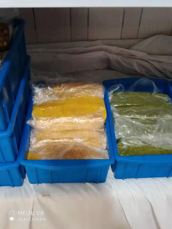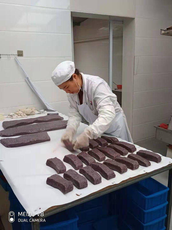 腳踏糕本名“年糕”,按常州周邊地區(qū)的風(fēng)俗習(xí)慣,在春季前夕,各家各戶都要蒸年糕,吃年糕。“糕”諧音“高”,過(guò)年吃年糕被賜予“年年高”,一年高一年,鋒吉祥之意,表達(dá)這人們對(duì)未來(lái)美好生活的憧憬和良好的祝愿。今天小編要帶大家的就是一家至今保持著傳統(tǒng)手工制作的鈺鋒糕點(diǎn)坊。 鈺鋒糕點(diǎn)坊位于常州鄭陸鎮(zhèn)三皇廟范家莊,一個(gè)比較偏僻的村莊,雖然這家作坊不大,但香糯絲滑,軟糯適中,韌勁十足的腳踏糕吸引了無(wú)數(shù)的食客。制作一條腳踏糕要從淘米,浸泡,碾粉,鋪粉,一層一層的鋪下去,需要無(wú)數(shù)道制作工序,這些都是店主孫煥公公老周,憑著幾十年的經(jīng)驗(yàn),加上店主孫煥從不馬虎的決心! 這“腳踏”也并非赤腳上陣,而是把蒸好的糕倒入早以準(zhǔn)備好的框子里,用布包裹好,上面再用薄膜包好,再蓋上布,再換上專門腳踏的布鞋,踩的時(shí)候要?jiǎng)蚍Q,左右腳要配合好,不然糕會(huì)高高低低,不平整,最后再拿蠟燭線拆成一條小長(zhǎng)條,再拿帶包裝好,如此又香又糯的腳踏糕就大功告成了。 店主孫煥為了讓更多的人認(rèn)識(shí)和了解常州腳踏糕的傳統(tǒng)文化和美食,她在傳統(tǒng)工藝中增加了適合現(xiàn)代文化的多種口味,她在糕里加入南瓜,紫薯,老紅糖,大麥汁,血糯米,核桃,葡萄干,紅棗等食材,做出五顏六色,純天然的口味,深受食客們的喜愛,不管是送人還是自己吃都非常新穎。 (重陽(yáng)糕)重陽(yáng)糕的由來(lái),九九重陽(yáng),九是陽(yáng)數(shù),也是陽(yáng)數(shù)中最大的數(shù),九月初九,兩九相重,為之重陽(yáng),古人有重陽(yáng)登高的習(xí)俗。高于糕同意,寓意人活九十九,生活步步高,秋景勝春光,夕陽(yáng)無(wú)限好。夕陽(yáng)紅成了老人對(duì)自己美好的祝愿和希望,所以從某種意義上來(lái)講它“祝壽糕”“長(zhǎng)壽糕”重陽(yáng)糕在常州地區(qū)是家喻戶曉的,下面小編帶你去一家至今保持傳統(tǒng)手工制作的鈺鋒糕點(diǎn)坊看一下吧。鈺鋒糕點(diǎn)坊位于常州市天寧區(qū)鄭陸鎮(zhèn)三皇廟范家莊,偏僻的小村莊,雖然有點(diǎn)偏僻,但是每到重陽(yáng)節(jié)到來(lái),每天還是有很多食客來(lái)訂購(gòu)和購(gòu)買店主孫煥做的多種口味的重陽(yáng)糕。要想做出松軟香糯的重陽(yáng)糕,原材料和糯米和梗米的配比也很重要,調(diào)整好比例開始淘米,浸泡,釓粉,放入糖攪拌,篩粉,糕底部放上荷葉,中間的餡心都是孫煥自己熬制,口感,香糯松軟,店主孫煥為了吸引更多現(xiàn)代年輕人,她在粉里加入南瓜,紫薯,紅糖,血糯等,色彩搭配很出跳,吸引來(lái)了很多食客,孫煥2019年開始自愿捐贈(zèng)重陽(yáng)糕給敬老院,她說(shuō)這樣的公益活動(dòng)自己很喜歡,雖然金額不大,缺表達(dá)了她的一份心意,并稱這樣的公益活動(dòng)她每年都會(huì)做。