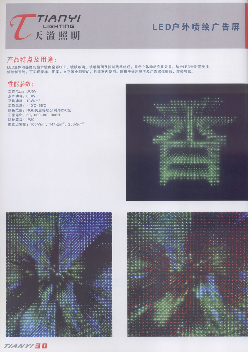 天溢照明是中國領先的專業(yè)從事LED廣告照明裝飾燈具設計、系統(tǒng)開發(fā)、燈具制造、工程服務一體的專業(yè)型公司,本公司產(chǎn)品已廣泛應用于全國大多數(shù)城市夜景亮化景觀照明、酒店休閑娛樂夜場夢幻燈光、戶內外廣告宣傳、建筑及室內照明以及家居裝飾等場合。 本公司產(chǎn)品涵蓋景觀裝飾照明、商用照明、居家照明、信息廣告顯示等領域,我們將性能可靠與適中價格的LED全系列產(chǎn)品帶到世界各個、角落。